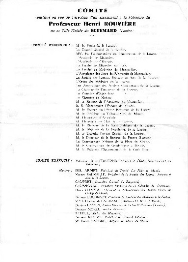 Fils d’un notaire du Bleymard, né le 23 décembre 1876, le professeur Rouvière est mort le 26 octobre 1952.
