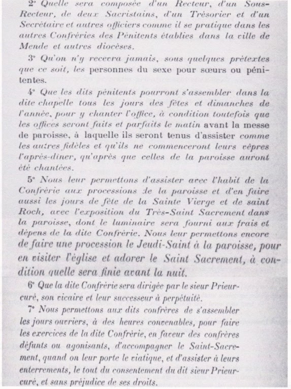 Je note, en particulier, le fait que l’acte constitutif prend grand soin de préciser la primauté de la paroisse et du culte ordinaire, dans la fixation des horaires des offices des pénitents, l’obligation pour eux, d’assister aux offices de la paroisse, etc.