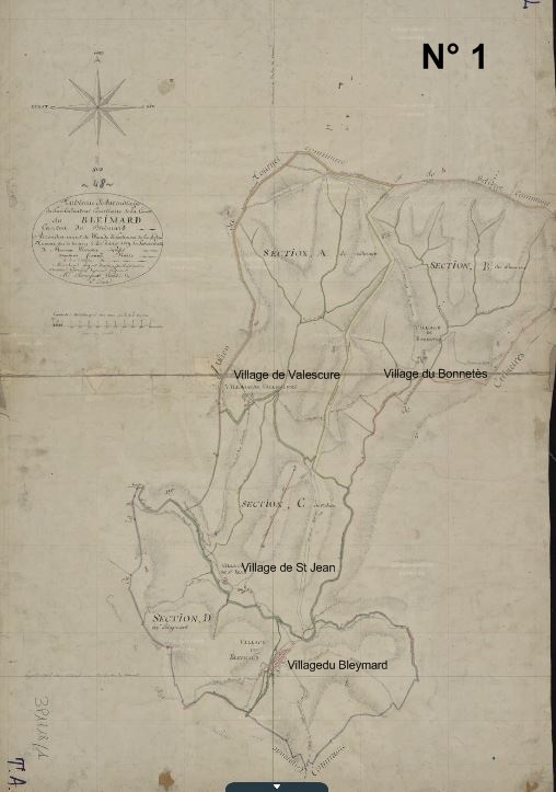 Aperçu du Bleymard et des environs d’après le plan cadastral de 1817–1819