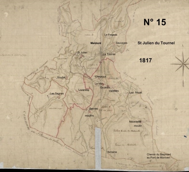 Un chemin muletier reliait Saint-Julien du Tournel au Bleymard. Il rasait le château du Tournel sur sa gauche, grimpait vers le Felgeas, passait à sauvages pour rejoindre Saint-Jean du Bleymard puis Le Bleymard, par « les Saltes ».