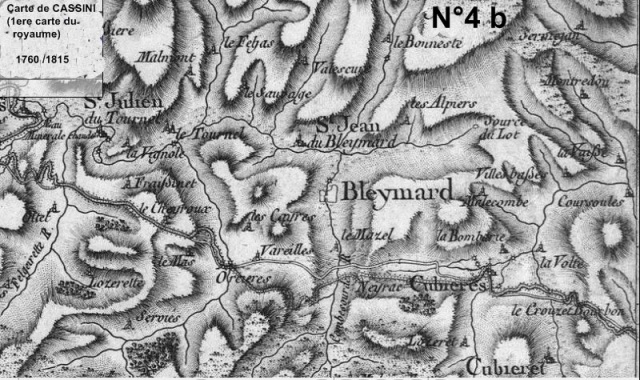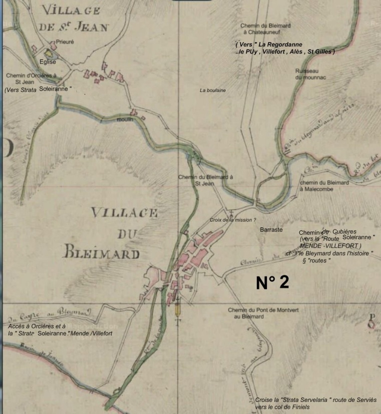 Les plans montrent à quel point Le Bleymard, et plus généralement les villages de la vallée du Lot, étaient isolés. Les voies importantes du Gévaudant (voies : Soléiranne, Servetaria et Regordanne) évitaient cette vallée. La carte Cassini et l’atlas de 1833 indiquent le tracé de la Voie Soleiranne.