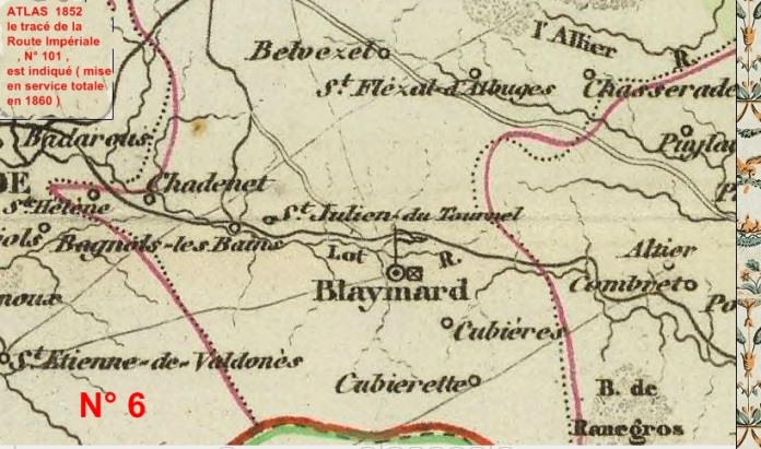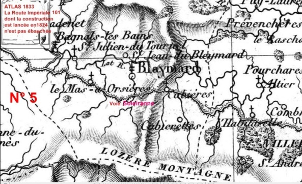 La route impériale n° 101 sera construite de 1824 à 1860. L’atlas de 1852 indique déjà son tracé (cf. 4bis à 6).