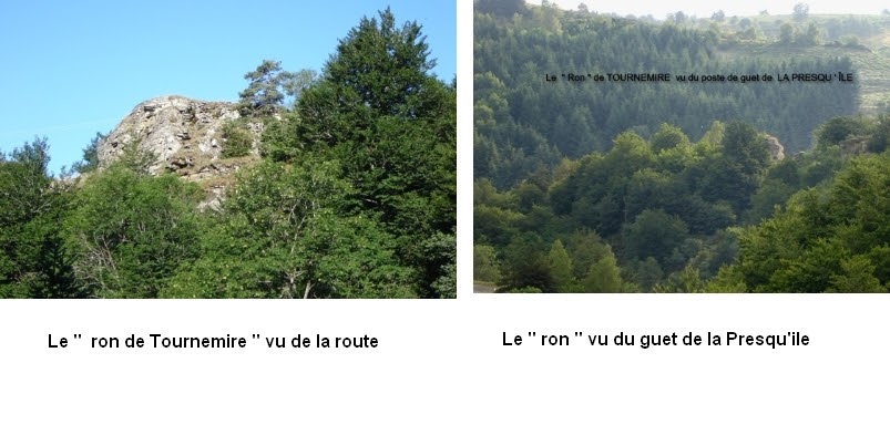 Légende ou histoire ? Mes parents me racontaient qu’au sommet du rocher de la Presqu’île un poste de guet permettait aux seigneurs du Tournel de surveiller la vallée du Lot et de communiquer avec une tour située en amont : le ron de Tournemire.