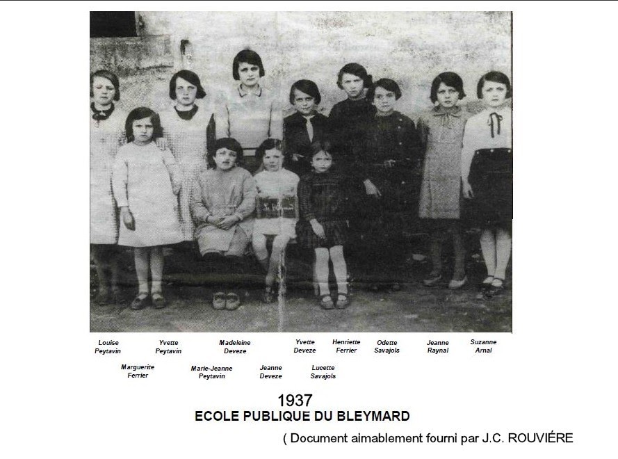La photographie ci-dessus, a été vraisemblablement prise en 1937 et regroupe la minorité des filles appartenant à six familles laïques dont deux familles d’instituteurs du Bleymard.